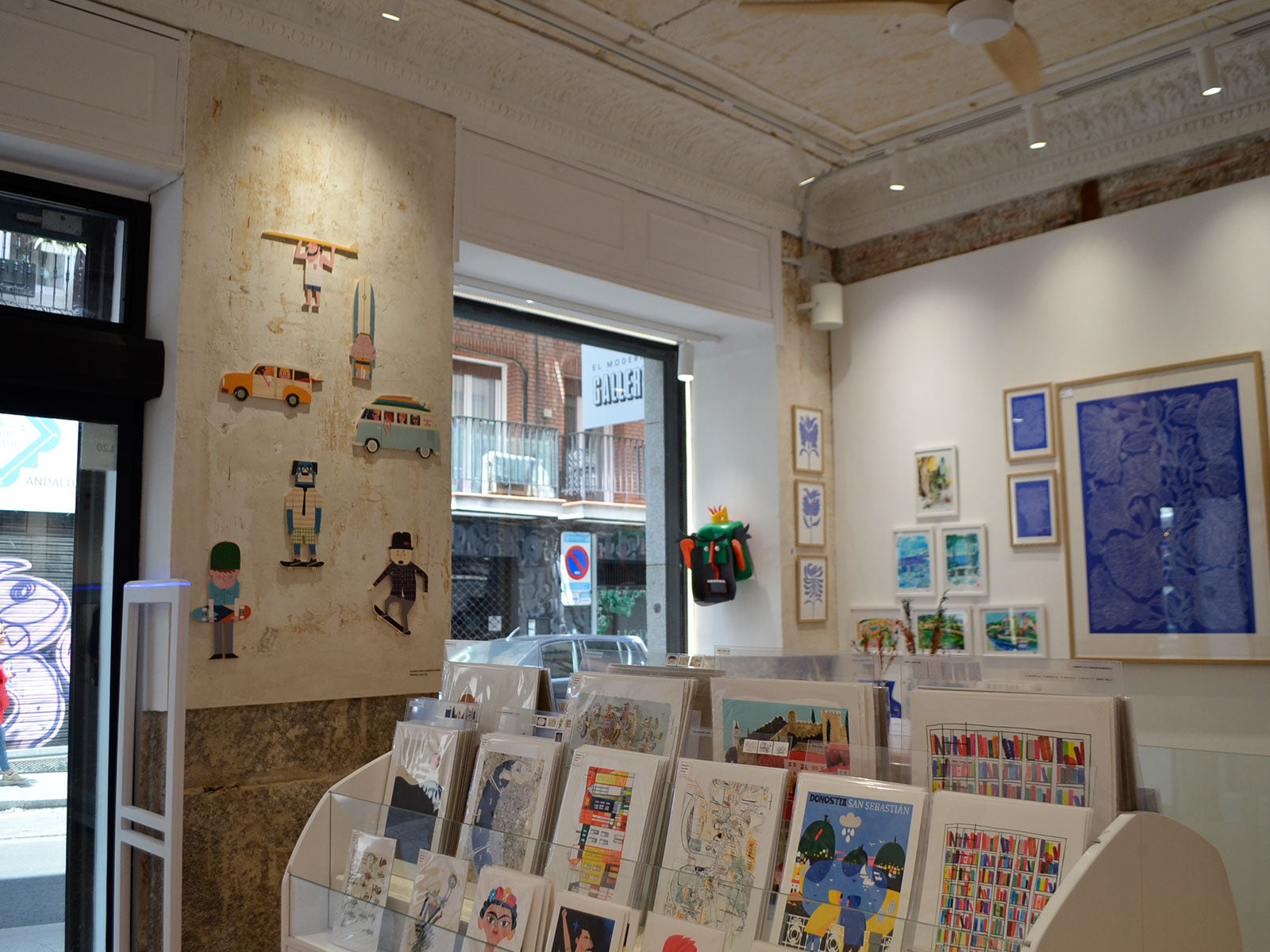El Moderno Gallery occupies a small space that for decades was a well-known pharmacy in the neighborhood. After a careful renovation, the space was transformed into a charming and accessible gallery, designed for those who value graphic art, illustration and design.