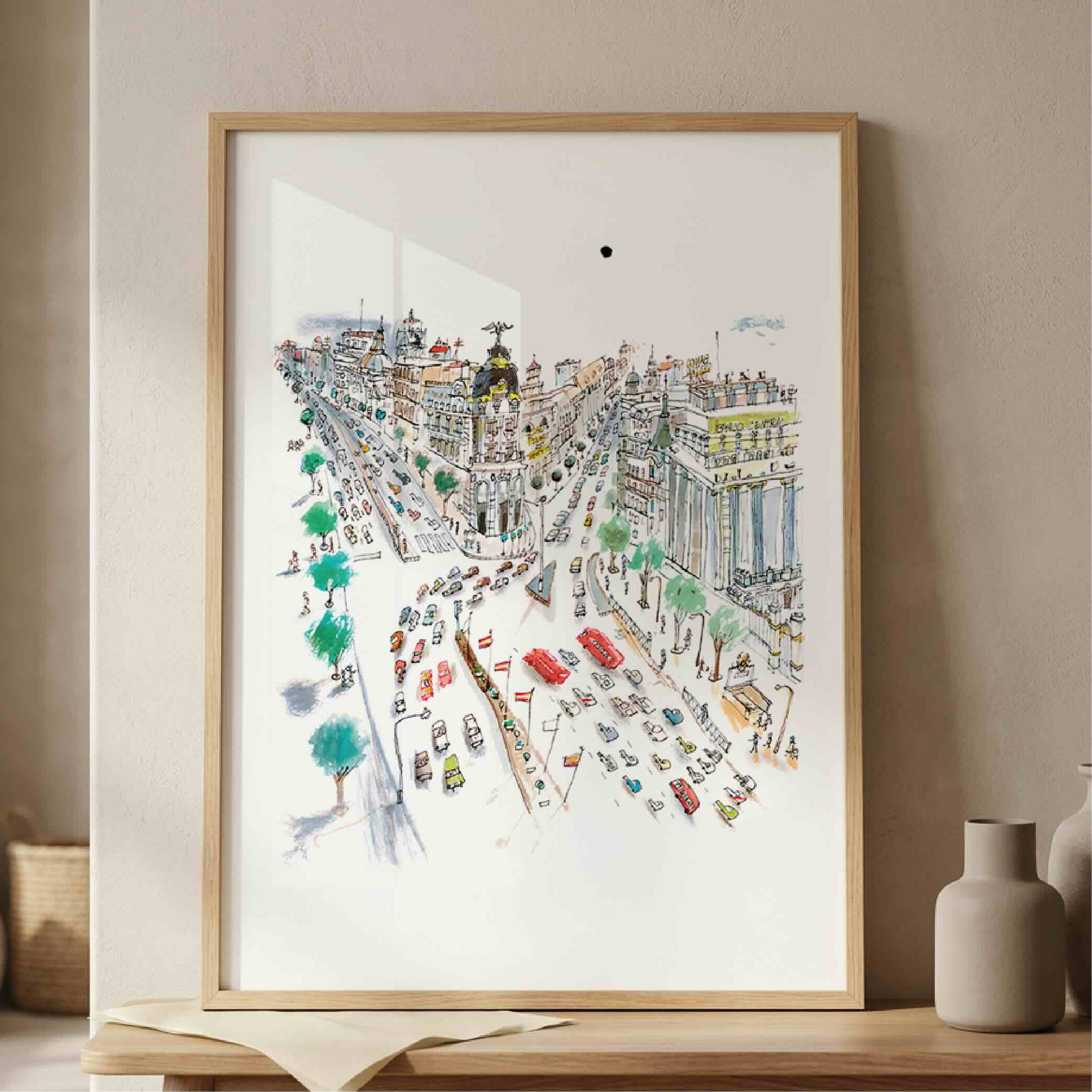 Traversée des rues Alcalá et Gran Vía Giclée Print A5