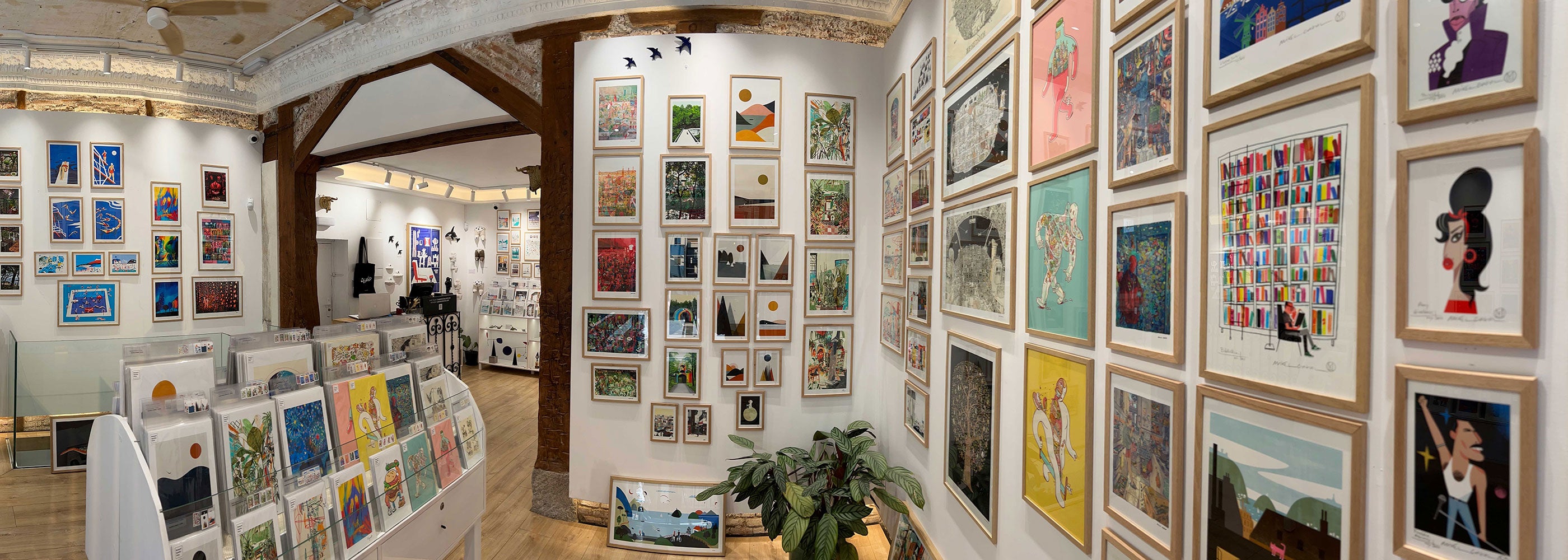La decisión de enfocar la galería exclusivamente en láminas decorativas fue impulsada por Delphine y David, quienes cuentan con una sólida experiencia en este campo. Durante los siete años anteriores, El Moderno Concept Store había incluido láminas decorativas en su catálogo, convirtiéndose en una de sus categorías más exitosas. Estas láminas, creadas por artistas de renombre y cuidadosamente seleccionadas, eran exclusivas de la tienda, lo que aumentaba su valor y atractivo. Así que, cuando surgió la oportunidad de abrir una nueva tienda, decidieron que debía centrarse exclusivamente en láminas. Para ello, la producción evolucionó hacia la técnica Giclée, se incrementó el número de artistas colaboradores, y se estableció el objetivo de convertir la pequeña tienda en una referencia mundial en su campo.
